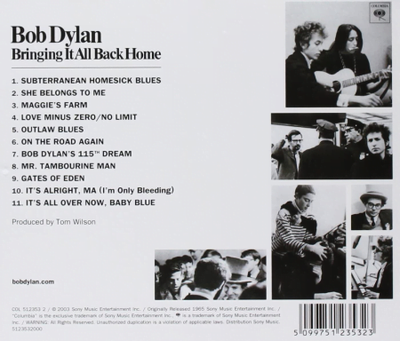 Ένα από τα σπουδαιότερα άλμπουμ του Μπομπ Ντίλαν, ήταν το «Bringing It All Back Home» (γνωστό ωςSubterranean Homesick Blues σε ορισμένες ευρωπαϊκές χώρες) είναι το πέμπτο στούντιο άλμπουμ του Αμερικανού τραγουδιστή-τραγουδοποιού Bob Dylan . Κυκλοφόρησε στις 22 Μαρτίου 1965, από την Columbia Records . Το πρώτο κομμάτι, ” Subterranean Homesick Blues “, έγινε το πρώτο single του Dylan στο chart στις ΗΠΑ, ενώ το Bringing It All Back Home έχει χαρακτηριστεί ως ένα από τα μεγαλύτερα άλμπουμ όλων των εποχών από πολλές εκδόσεις.