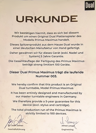 Δεν θα κουραστούν και πολύ οι Γερμανοί… Εκατό κομμάτια είναι μάλλον λίγα και η συλλεκτική τους έκδοση θα εξαντληθεί γρήγορα. Είμαι σίγουρος ότι θα βρεθούν πολλοί που θα δουν το συγκεκριμένο πλατό ως επένδυση, πρωτίστως συναισθηματική και δευτερευόντως οικονομική. Το Primus Maximus έχει όλα τα προσόντα να γίνει, κάποια στιγμή, πραγματικά συλλεκτικό, ως κεφάλαιο της ιστορίας: Ανήκει σε έναν ήδη ιστορικό κατασκευαστή, αποτελεί το πρώτο του προϊόν με την συγκεκριμένη αρχιτεκτονική από τα 80s’ και κινείται σε μια υψηλή κατηγορία τιμής. Αρκούν αυτά; Θα εξαρτηθεί από τον τρόπο με τον οποίο θα κινηθεί η Dual στην συνέχεια και το αν θα κεφαλαιοποιήσει μια ενδεχόμενη επιτυχία σε μοντέλα χαμηλότερης κατηγορίας.