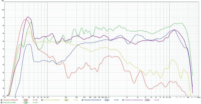 Έπαιξε δυνατά, αρκετά δυνατά, βγάζοντας 88dB στο 1μ. με ανύπαρκτη παραμόρφωση (THD <10% στο μπάσο, <0.6% στο υπόλοιπο φάσμα), ενώ και στην μέγιστη στάθμη του (102dB) η παραμόρφωση ήταν σε λογικά επίπεδα (βασικά και στα 92dB ήταν πολύ καλά, με το μπάσο <20% και στο υπόλοιπο φάσμα <1.5%).